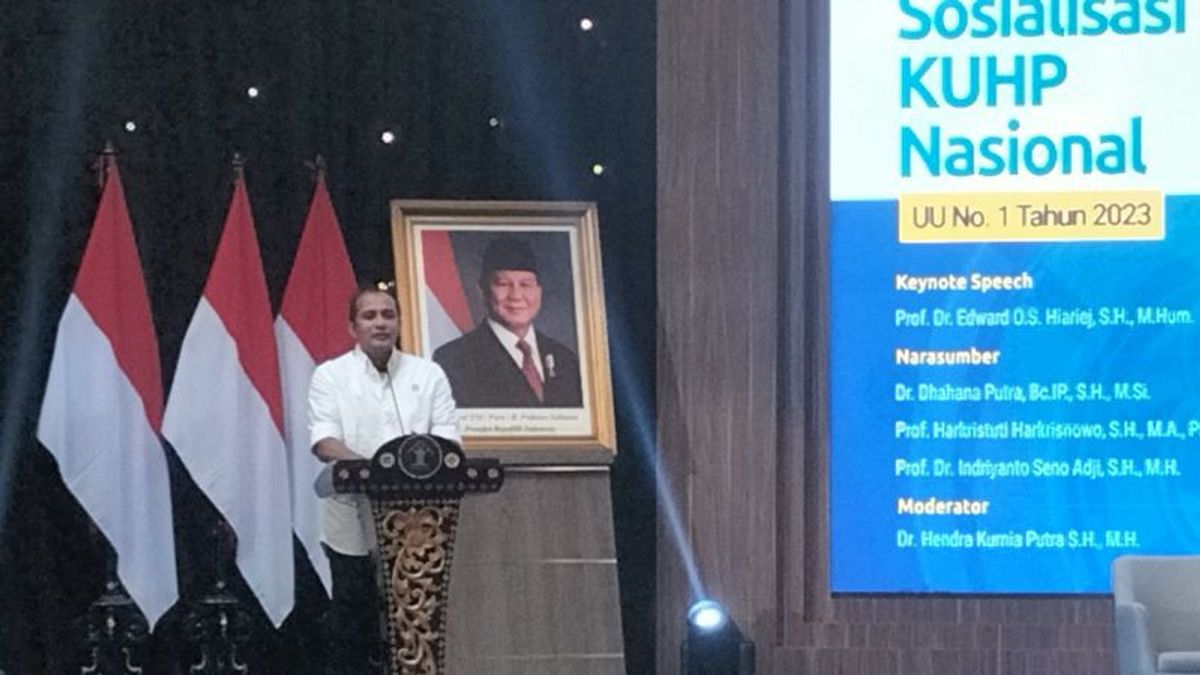 Padahal, lanjut Wamenkum, KUHP yang baru itu sudah merujuk paradigma hukum pidana modern yang berorientasi pada keadilan korektif, keadilan restoratif, dan keadilan rehabilitatif.