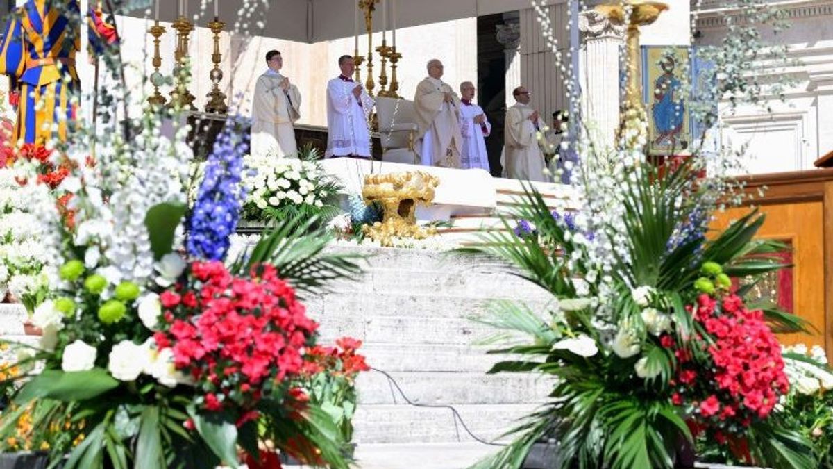 Sebelumnya, Paus Leo berpidato di hadapan sekitar 50.000 umat dari altar terbuka di Lapangan Santo Petrus yang diapit mawar putih, sementara tangga menuju piazza tempat umat beriman berkumpul dipenuhi dengan tanaman tahunan musim semi, secara simbolis selaras dengan kata-kata Paus, dikutip dari The Associated Press.